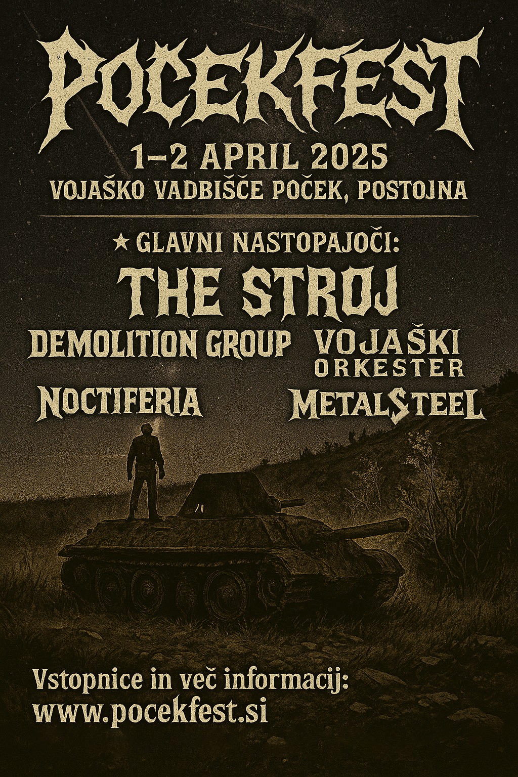 🇸🇮🔥 POČEKFEST 2025 – PRVI TRADICIONALNI FESTIVAL NA BIVŠEM VOJAŠKEM POLIGONU! 🔥🇸🇮 Z izstopom Združenih držav iz zveze NATO se vojaško vadbišče Poček zapira. V ta namen v sodelovanju z Vojaškim orkestrom organiziramo prvi tradicionalni Poček Fest na bivšem vojaškem poligonu Poček! Koncert bo z opernimi spevi odprl Počkaj, nato pa bodo oder razrušili: ⚡ The Stroj ⚡ Demolition Group ⚡ Noctiferia ⚡ Metalsteel ⚡ Vojaški orkester Za zaključek festivala pridejo še lokalni Guns N' Roses cover band in Sex Pistols tribute band – ker nič ne reče "slovo od vojaškega poligona" bolj kot punk in rock himne! 🔥 Vstopnice in več informacij: www.pocekfest.si Pridi in postani del zgodovine! 🚀 #Počekfest #MetalnaPoligonu #ZadnjiPozdravPočku #VojaškaMetalMobilizacija P.S. Za žreb za brezplačno vstopnico enostavno deli to objavo! 🚀🚀 🚀
